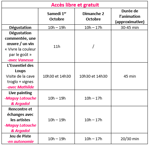 Vanessa Godfrin, du Secret des Papilles, vous proposera une dégustation commentée, une œuvre / un vin, et vous pourrez évidemment visiter nos caves et goûter nos différentes cuvées !