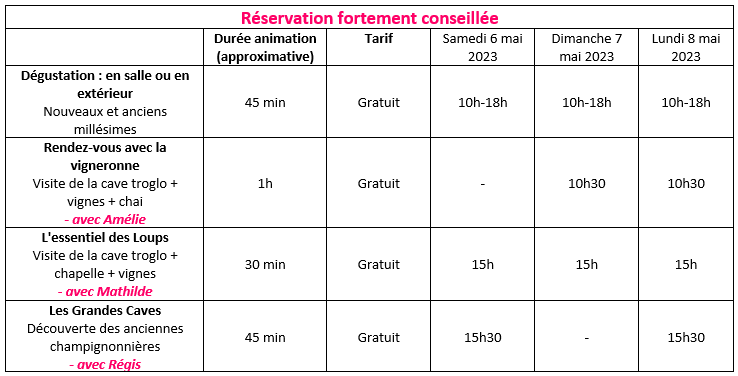 Au cours de cette journée, vous pourrez déguster nos vins comme jamais auparavant, à travers un parcours qui vous fera (re)découvrir notre Chai et notre cave troglodytique.